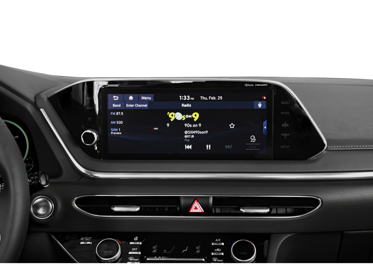 - Radio: AM/FM/SiriusXM/MP3 w/Navigation -inc: 10.25" color touchscreen, HD radio, Blue Link, smartphone integration w/Apple CarPlay and Android Auto, Bluetooth® hands-free phone steering audio controls and Bose premium audio w/12 speakers (1 center channel, 2 dash, 2 front tweeter, 4 door mounted, 2 rear mounted speakers + 1 rear mounted subwoofer)
